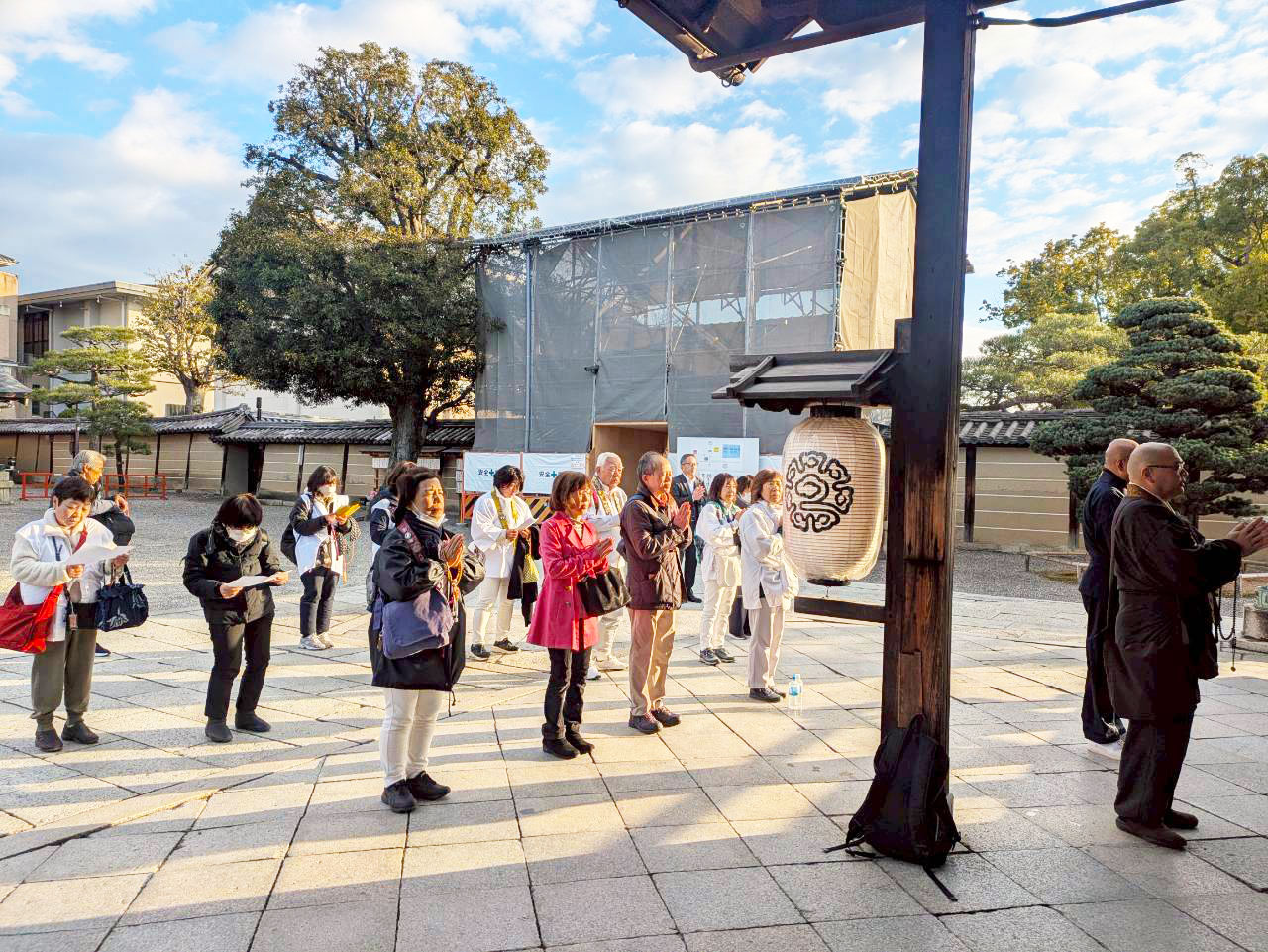 令和7年12月7日(日)、三弘法霊場会主催により初めて「バスで巡る三弘法」を開催しました。僧侶3名、参加者13名、スタッフ2名の総勢18名が参加し、初冬の澄んだ空気の中、東寺御影堂にて般若心経を唱えて出発しました。
