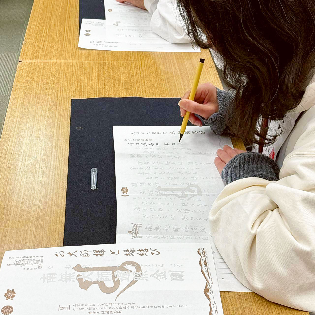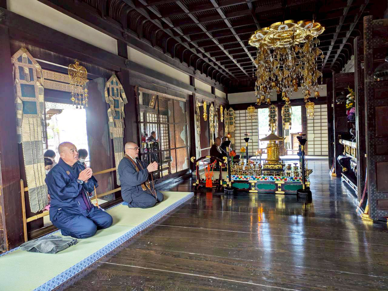仁和寺では、御影堂で祈りを捧げた後、心静かに写経を行い信仰を深め、法話では「自分自身を大切にする体は御大師様そのものである」などの教えをいただきました。また「追弔和讃」を参加者の皆さんで唱え、亡き人々への祈りを込めました。昼食後は、金堂と観音堂を拝観しました。